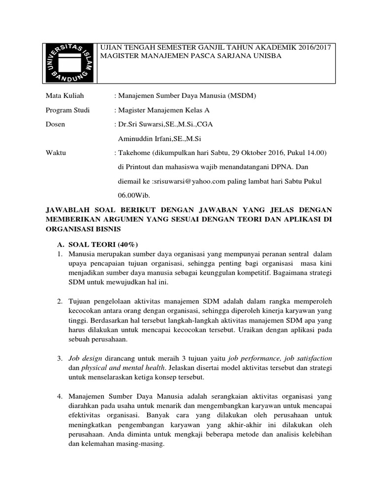 Soal Ujian Manajemen Sumber Daya Manusia / Contoh Soal Ujian Manajemen Sumber Daya Manusia Msdm Travel Tale / Contoh soal dan jawaban untuk msdm 1.. Contoh soal ujian tugas akhir program manajemen operasi beserta perhitungannya soal uas manajemen sumber daya manusia msdm beserta jawaban dan penjelasannya tips agar uas universitas terbuka mendapat nilai bagus lulus tanpa tatap muka dan tanpa modul. Apakah yang dimasud dengan kompensasi/remunerasi bag sumber daya manusia di perusahaan? Soal ujian semester manajemen sumber daya manusia rabu 16 juni 2020 pkl 19.00 pengampu dr. Strategi, manajemen pemasaran, dan pembelian b. Saat ini anda sedang mengikuti program latihan mandiri untuk matakuliah ekonomi sumber daya manusia (espa4319).